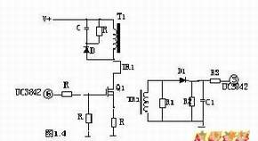 当输出电路短路或过流,原边电流增大,R3 两端电压降增大,③脚电压升高,UC3842⑥脚输出占空 比逐渐增大,③脚电压超过1V时,UC3842关闭无输出。