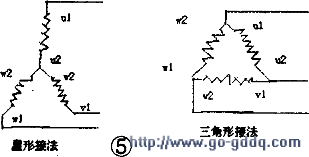5.把三相的首A(口)、C(口)、E(口),尾D(O)、B(O)、F(O)按星形或三脚形连接起来(如图5),并理解其涵义。