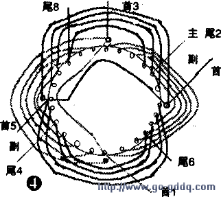 (2)对称按同样方法嵌入主绕组的另一半(如图1)。