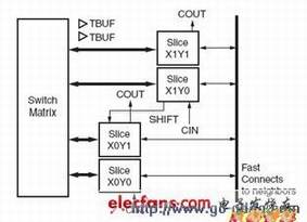 可配置逻辑块是 FPGA 的基本逻辑单元。实际数量和特性会依器件的不同而改变,但是每个 CLB 都包含一个由 4 或 6 个输入、一些选择(多路复用器等)和组成的可配置开关矩阵。开关矩阵具有高度的灵活性,经配置可以处理组合型逻辑、移位寄存器或 RAM。 这里给出了一个高层次的 CLB 简介。有关更多架构细节,敬请参阅相应器件的数据手册。