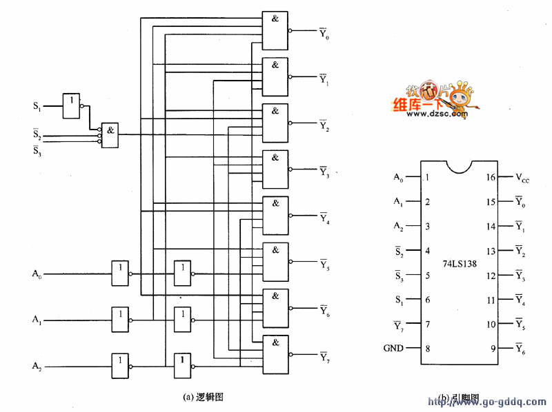 图1 74LS138译码器电路及引脚