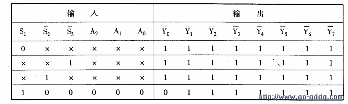 由功能表可知,A2A1A0是输人端,Yo~Y7是输出端。S1 S2S3 是控制端。S2和S3低有效,S1高电平有 效,输出低电平有效。当S2S3均为低电平,S1为高电平时,译码器工作,输出YO~Y7的状态依赖当前输人 逻辑变量A2A1A0的状态。如果S2S3和S1有一个不满足要求,则输出Y0~Y7全为高电平,译码器被禁止。