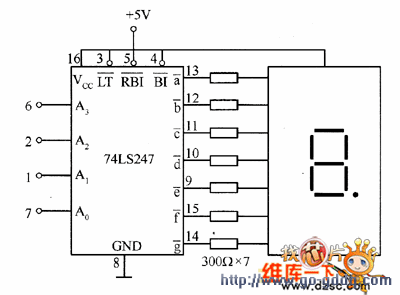 图4 74LS247和半导体数码管的连接图