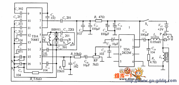 收音机集成芯片很多,下面以 TDA7088 和 TDA2822 构成的收音机为例简要介绍FM收音机 。