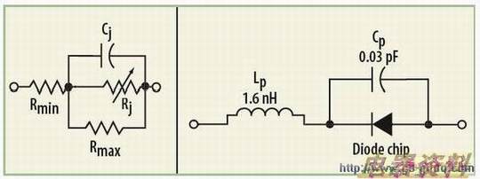 寄生电路元件(例如有害的和),是同二极管片和封装与生俱来的,它定义了开关性能限制。在串联开关结构的范围内,封装电容和芯片电容(分别为Cp和Cj)共同引起隔离度随频率升高而逐渐降低。封装寄生电感Lp引起开关插损随频率按比例增加(图1)。为了改善PIN二极管在微波范围内的性能,制造商们在坚持不懈地创造更小的封装。这些封装带来的寄生产物更少。业界标准的 SOT323 、SOD-323和SOD-523正是制造低成本塑料封装PIN二极管部件无尽推动力的印证。