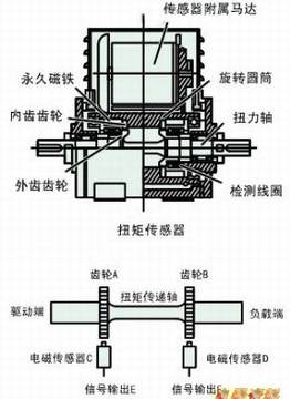 电位计式扭矩传感器主要可以分为旋臂式、双级行星齿轮式、扭杆式。其中扭杆式测量结构简单、可靠性能相对比较高,在早期应用比较多。