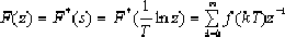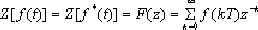 F(z)就叫做 的z变换,并且以 表示 的z变换。 在z变换中,只考虑采样时的信号值。因此,f(t)的z变换与f*(t)的z变换有相同的结果。即: