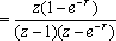 ⒉部分分式法 当给定某连续函数f(t)的拉氏变换F(s)时,欲求其z变换,可利用本法,因为许多函数F(s)利用部分分式可以化成如下形式: 通过其中的每一项拉氏反变换得到原函数f(t)为: 而其z变换可以表示为: 下面举例说明。 例7-4 求下列函数的z变换:F(s)=1/s(s+1) 解: 先将F(s)展开成部分分式。 其中, 1/s[或1(t)]相应的z变换为z/(z-1) ,而1/(s+1)[即e-t] 相应的z变换为 z/(z-e-T) | 则: |  |  |
