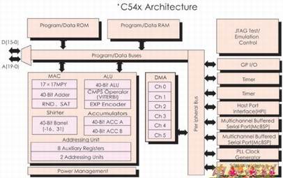 TMS320C54x关键特性 图2是C54x功能结构图,它的主要性能如下: