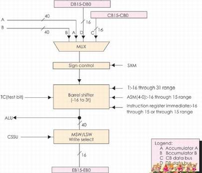 图5 桶形移位器功能框图 输出:ALU的40位输出被送往累加器A或B。