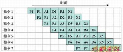 图9 流水线不同工作阶段操作内容 流水线的工作全部为单字指令连续执行时(理想情况)如图10 所示。