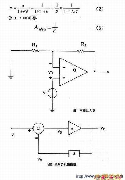 将式(1)代入式(3),并令rd→∞ ,r0→0得到理想情况 Aideal=(R1+R2)/R1 这与用理想模型得出的结果是一致的。 对于运算放大器电路,可以用同样的方法求得反馈系数,并建立其负反馈电路模型(该模型与同相电路是不同的,因为输入是加在同一个电路的不同点上),从而得出A和Aideal的值。