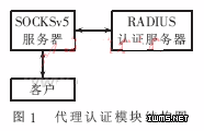 EAP协议允许防火墙在SOCKSv5认证方法阶段不必预先商定具体的认证机制。它支持所有的EAP认证的扩展机制,认证服务器可根据用户的身份来决定认证机制的类型。这就允许SOCKS服务器在决定之前认证机制可以向用户请求更多的信息。并且可以使用一个后端服务器来专门执行各种不同的认证,这使得支持EAP功能的RADIUS服务器可以用作后端服务器进行各种不同的认证。代理认证模块结构如图1所示。