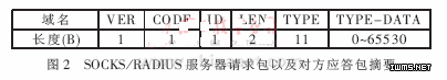 (1)SOCKS/RADIUS服务器请求包以及对方应答包的摘要如图2所示。