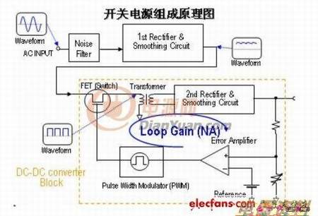 (3) 把直流电转化为高频率的脉动直流电,这一步由控制电路来完成。输出部分通过一定的电路反馈给控制电路,控制电路用来调整高频开关元件的开关时间比例,以达到稳定输出电压的目的。控制电路目前已集成化,制成了各种开关电源用。