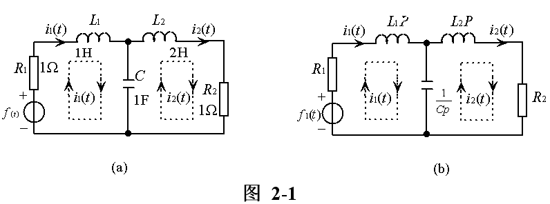 用行列式法从式(2-2)中可求得响应i1(t)为 |