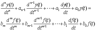推广之,对于n阶系统,若设y(t)为响应变量, f(t)为激励,如图2-2所示,则系统微分方程的一般形式为 |