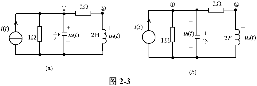 例2-1 图2-3(a)所示电路。求响应u1(t),u2(t)对激励 |