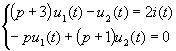 解 其算子形式的电路如图2-3(b)所示。对节点①,②列算子形式的KCL方程为 |