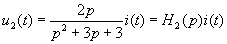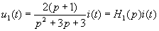 故得u1(t)对i(t),u2(t)对i(t)的传输算子分别为 |