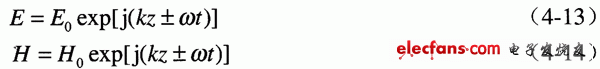 现在我们考虑一下传输的电磁波,跟理论一样,我们可以用指数形式来表示传输波。电场和磁场可分别描述为