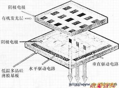 构成OLED像素阵列的方法主要有无源矩阵(PM-OLED)和有源矩阵(AM-OLED)两种。两种OLED显示器的结构相同,但像素寻址方法不同。