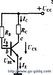 由图又可求得工作点Uce=;Uce=Ucc-IcRc,式中IcRc前面的负号表示输出与集电极Ic,即与输入电压反相。