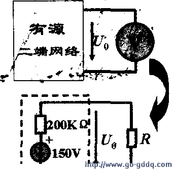 对外来说,任何一个线性有源二端网络,均可以用一个理想源和一个元件串联的有源支路来等效代替,其电压源Us等于线性有源二端网络的开路电压Uoc,元件的阻值R0等于线性有源二端网络除去后两个外引端子问的等效Rab,如图所示。