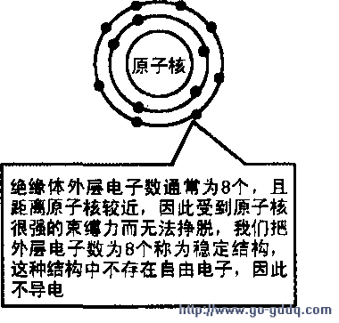 常说的导体、半导体和绝缘体的原子结构特点如下图所示。当外界电场的作用力超过原子核对外层电子的束缚力时,绝缘体的外层电子同样也会挣脱原子核的束缚成为自由电子,这种现象我们称为“绝缘”。绝缘体一旦被击穿,就会永久丧失其绝缘性能而成为导体。
