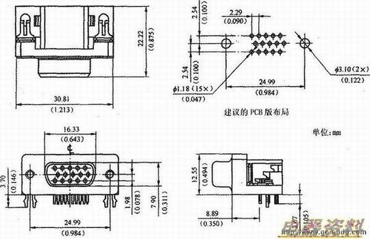 小D形15针孔座连接器的结构、尺寸及针脚分配分别如下图和下表所示。用平板电视机通过VGA输入接口显示计算机的图形、文字信息,具有屏幕大、临场感强、可供多人同时观看等优点,特别适合电化教学。