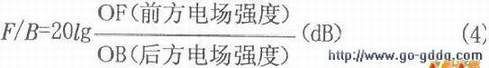 它是定向天线的前方电场强度与后方电场强度之比(front to back ratio)。