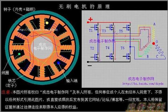 以下这是上一期(电动车)直流无刷电机的原理与控制里的原理图,在这一期里着重介绍无刷电机的运行原理。
