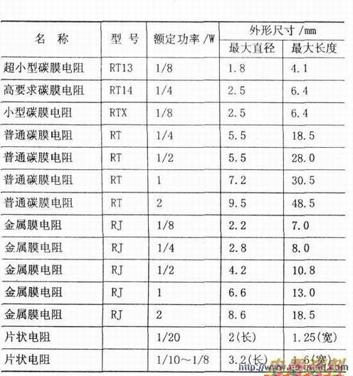 在使用器时,一是阻值要准确;二是功率要符合要求。如果有的没有标明功率大小,我们可从的体积上大致判断出它的功率。电阻器体积与对应关系见下表所示。
