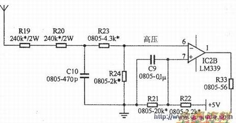 电磁炉高压保护单元的作用是时刻检测管C极,在电磁炉工作出现某些意外的情况,IGBT管C极电压接近IGBT管最大耐压值时,对IGBT管进行保护,电气结构如图所示。