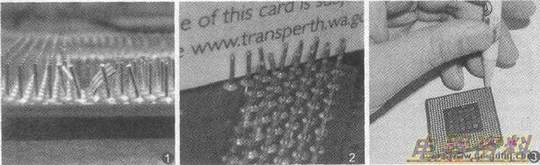 虽然Intel的主流CPU已经改用触点式针脚,但目前的AMD CPU或者是一些较老的CPU仍然采用的是直立针脚形式。