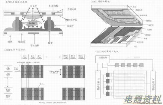 按照发光工作原理的分类来说,和日光灯的发光原理是一样的,它是在真空玻璃管中注入惰性气体,再利用加的方式,使气体产生电浆效应而发出紫外线(uv)光。此紫外线照射到涂布在玻璃管壁表面上的荧光粉时,荧光粉就会被激发出可见光;屏就是采用管作为发光元件,大量的等离子管排列在一起构成屏幕,每个等离子对应的小室内都充有氖与氙或氦与氙等种类的混合惰性气体。在等离子管电极间加上高压后,封在两层玻璃之间的等离子小室中的惰性气体就产生紫外光,激发平板显示屏上的红、绿、蓝三基色荧光粉发出可见光。每组相邻的RGB小室作为一个,配合驱动的设计与影像信号进行处理,则可将三种原色的光混合产生各式各样的颜色.以形成彩色的画面。