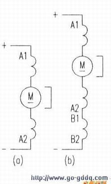 该类电机的主磁极是由硬磁性材料(永久磁钢)制成。它有两种类型:一类是电枢绕组单一:第二类是电枢绕组与换相磁极绕组串联。其接线图见下图(a)、(b).相关绕组引出端标记符号见附表,永磁式直流电机由于受到主磁极磁感应强度的限制,电机功率相对较小,一般用于电器产品中。如录音机、影碟机、录像机中的电机。