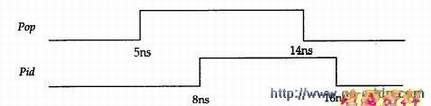这一模块产生如图2-5所示的波形。initial语句包含一个顺序过程。这一顺序过程在0ns时开始执行,并且在顺序过程中所有语句全部执行完毕后,initial语句永远挂起。这一顺序过程包含带有定义语句内时延的分组过程赋值的实例。语句1和2在0ns时执行。第三条语句也在0时刻执行,导致Pop在第5ns时被赋值。语句4在第5ns执行,并且Pid在第8ns被赋值。同样,Pop在14ns被赋值0,Pid在第16ns被赋值0。第6条语句执行后,initial语句永远被挂起。第8章将更详细地讲解initial语句。
