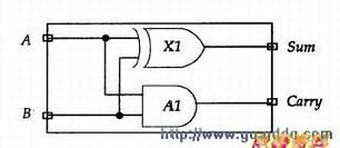- moduleHalfAdder (A, B, Sum, Carry) ;