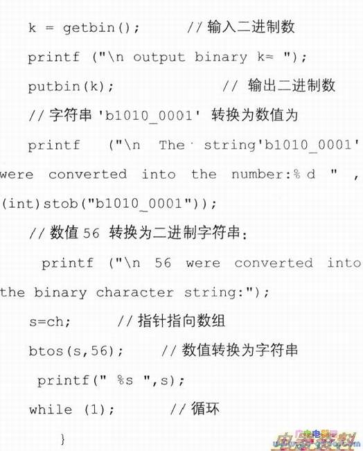 输出二进制数:调用putbin()函数通过串口输出二进制数。
