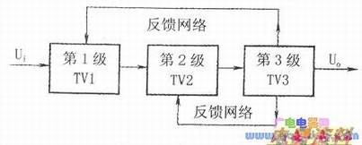 在画方框图时,相关小方框之间应使用带箭头的连线连接起来,见下图所示。箭头方向表示信号流通方向。画带箭头的连线时,还要注意各级间的反馈环路,不论是正反馈,还是负反馈,它们都对电路系统具有重要作用。
