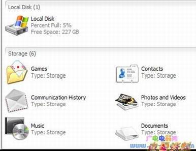 8、存储文件夹——请注意标签为“Communations History”和“Music”的存储类型: