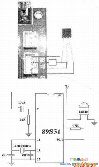 把DS18820温度的三个管脚对应插到学习板上黑色的标注“温度”插座,注意板上有一个弧度,传感器对应弧度方向,有字的一面向里面,弧度那面向外面插入。如下图所示。把编写好的程序下载到学习板的中,从相应的可看到当前温度的变化。