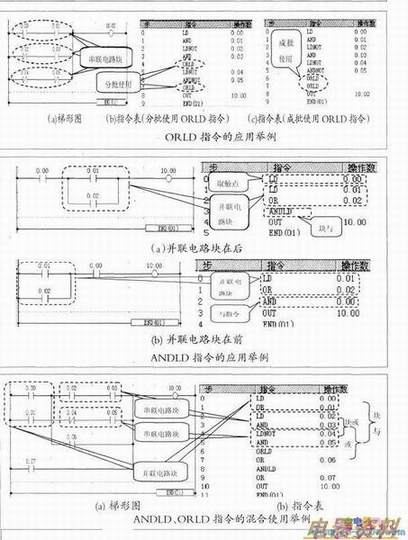 (2)当一个并联电路块和前面的触点或电路块串联时,需要用块与ANDLD指令;当一个串联电路块和前面的触点或电路块并联时,需要用块或ORLD指令。