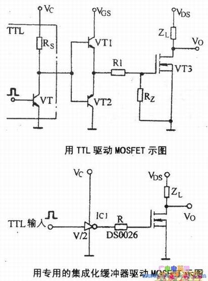 a.用TTL驱动MOSFET。可按上图所示,用TTL驱动MOSFET。