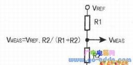 所有的电阻式触摸屏都采用分压器原理来产生代表X坐标和Y坐标的电压。如图所示,分压器是通过将两个电阻进行串联来实现的。上面的电阻(R1)连接正参考电压(VREF),下面的电阻(R2)接地。两个电阻连接点处的电压值与R2的阻值成正比。