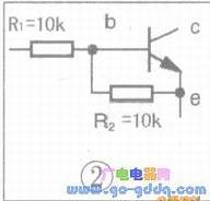 由于b-e结上并联了一个电阻R2,所以,在b-e结上一加反向电压,就有(不要一看到小电流就认为是不良品),随着反向电压的增加,反向电流逐渐上升,呈现一典型电阻特性。b、e两极所加电压的差值与电流差值相比,就是电阻R(等于R1+R2)的值。当反向电压加到大于晶体管的b-e结反向时,b-e结雪崩击穿,b-e结上并联的电阻R2被短路,但曲线不是垂直向上,因为基极里有串联电阻Rl,其倾斜部分直线的斜率(电压差除以电流差)就是电阻Rl的值,再用R值减去R,1的值就是电阻R2的值。