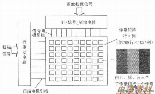 (1)液晶彩电用背光灯驱动电路及均光组件取代了CRT彩电的显像管附属电路以满足发光条件;用液晶屏内部的行、列驱动电路取代了CRT彩电的行、场扫描电路,以完成整幅光栅的显示,如下图所示。