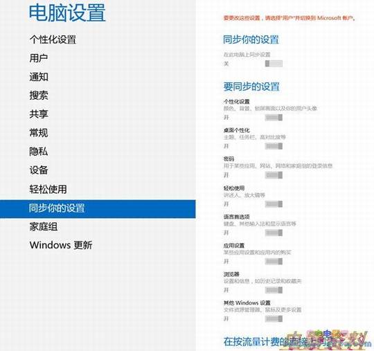无论是个人电脑、平板电脑还是笔记本,你使用的一切都可以对个人设置进行同步。我们要感谢 Mrot 帐户和 Windows 8 云端友好平台,你的个性化设置可以与你一路随行。“更改电脑设置”中的“同步你的设置”选项可以让你同步个性化设置(背景,颜色,锁屏和帐户图片)、密码、语言偏好、应用设置、浏览器设置,等等。这一功能使得新设备更易于上手,同时在使用从朋友那里借来的平板或笔记本时也可以拥有更加符合个人习惯的体验。