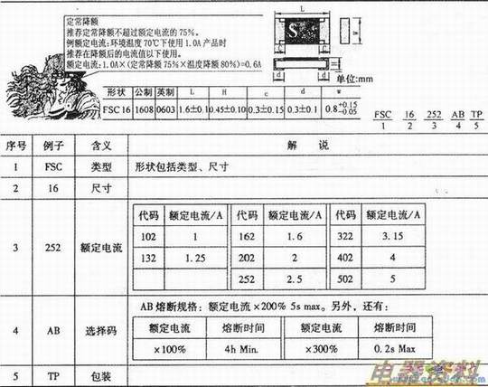 釜屋电机株式会社FSC16贴片熔丝的形状、命名方法见下表。
